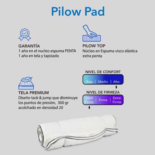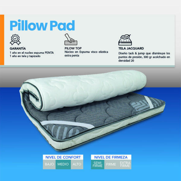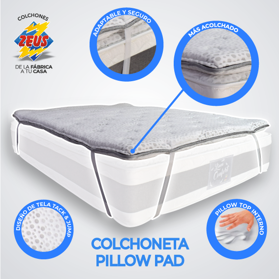 Cambia el confort de tu colchón con el Pilow Pad zeus, está diseñado para aumentar la altura y la suavidad de tu colchón con su tela acolchada y su interior en una espuma tipo Penta que se adapta a tu cuerpo y disminuye los puntos de presión.